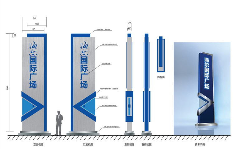 一般情況下室內標識標牌都是屬于比較小型的標識牌,安裝方式都已懸掛和粘貼為主,這類標識牌主要有科室牌、索引牌、大堂牌、消防疏散圖、衛生間牌、燈箱吊牌,由于這類標識牌不需要考慮復雜的天氣因素及抗風因素因此材料可以選擇薄一點的鍍鋅板。戶外標識則是比較大型的標識牌安裝方式常以預埋式標識為主,這類標識牌主要有:導向立牌、停車場牌、宣傳欄、總平圖牌、景點介紹牌、小草牌等,這類標識牌由于安裝在室外,受天氣環境影響較嚴重,因此在選材時要注意材料的防腐蝕性及相應的抗風力度。出去以上的標識標牌種類之外還有一種大型的比較重要的標識標牌暨精神堡壘。
